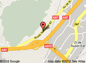Prendre la sortie n°6 (La Farlède). Au premier rond point, prenez à gauche, direction "La Valette du Var". Vous êtes sur la RN97. Après avoir parcouru 2 km, la Société EUROPRO est située sur le côté droit de la chaussée.